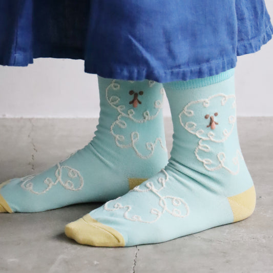 KIVISDOU きびす堂|【2足組】ドローイングドッグ クルーソックス 犬柄 靴下 レディース 個性的 立体 刺繍 |k41174