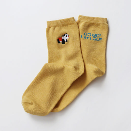 KIVISDOU きびす堂|【2足組】GOGO!パンダカー 刺繍 ショートソックス レディース 靴下 セット レトロ アニマル|k31135