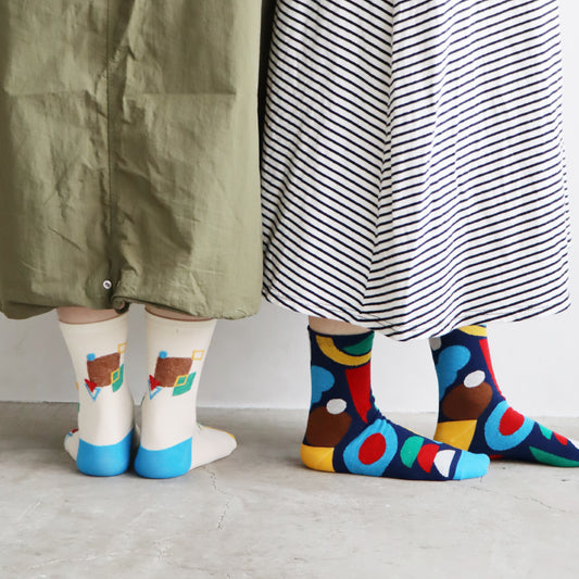 KIVISDOU きびす堂|【2足組】○△□ショートソックス 個性派 幾何学 デザイン レディース 靴下|k31151