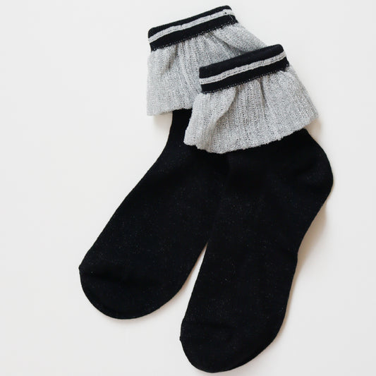 KIVISDOU きびす堂|【2足組】シャイニーフリルショートソックス 伸ばしても可愛い2WAY仕様 ラメの煌めきが映える個性派レディース靴下|K31149