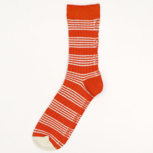 TAWARA タワラ|綿麻ボーダー クルーソックス 蒸れにくく快適 レディース靴下 ローゲージデザイン|t41168