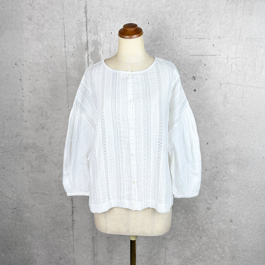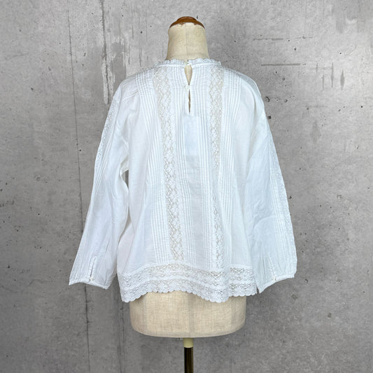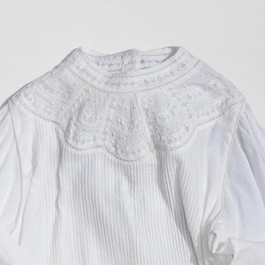 Fanaka ファナカ|リバーレースピンタック刺繍ブラウス アンティーク風 ハンド刺繍 スカラップ |232-2305