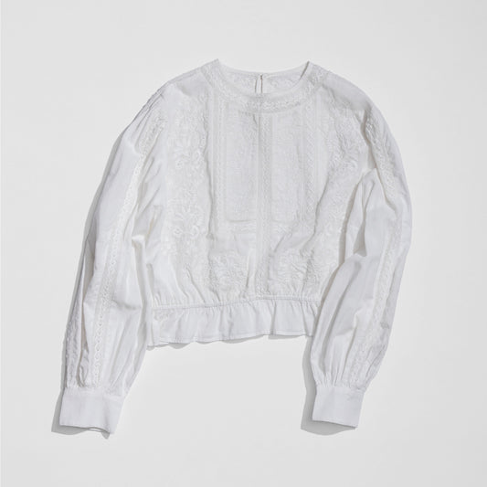 Fanaka ファナカ|立体ボタニカル刺繍 ペプラムブラウス 綿レーヨン レース袖 ボリューム袖 |231-2016