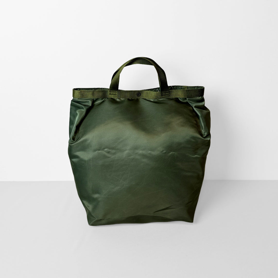 - ► ハリ感のあるMA-1ツイルナイロンを使用し、上品なミリタリーの雰囲気をプラス。 Sサイズでも底マチが広く、見た目以上に荷物が入る収納力を誇ります。
