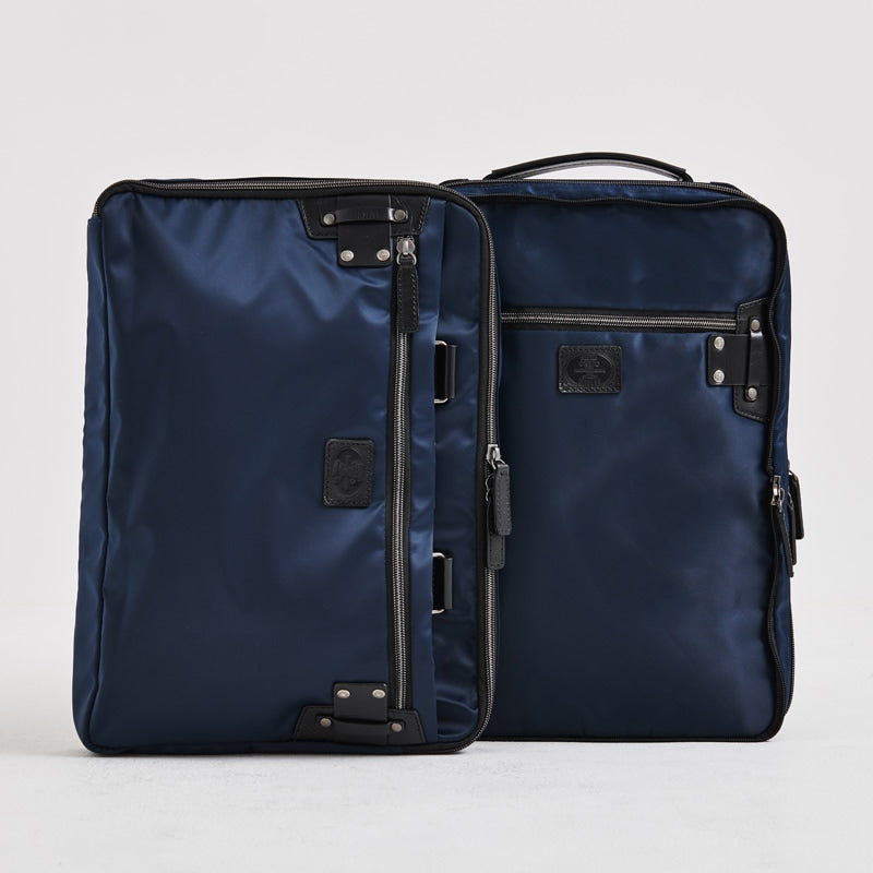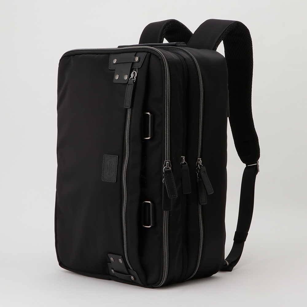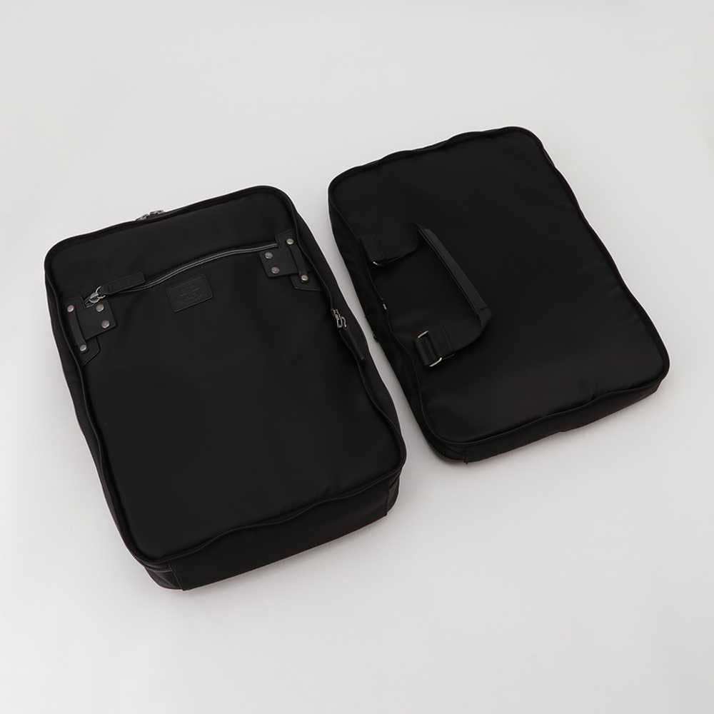 - ► ハリがあり、強度の高いナイロン生地を本体に採用。ツヤを控え、落ち着いた雰囲気に。付属は本革を使い高級感を出しています。荷物の容量、シチュエーションによって幾通りもの使い方ができるセパレート仕様。