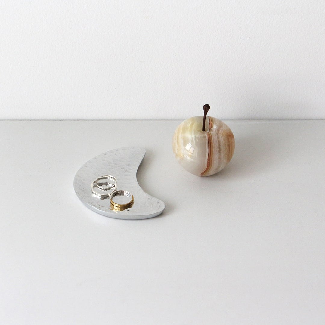 - ► 三日月をイメージした柔らかいシルエットのデザインは、神秘的なイメージを与えてくれます。アクセサリートレイやお香・パロサントを炊く際の受け皿などとして使いやすいサイズです。