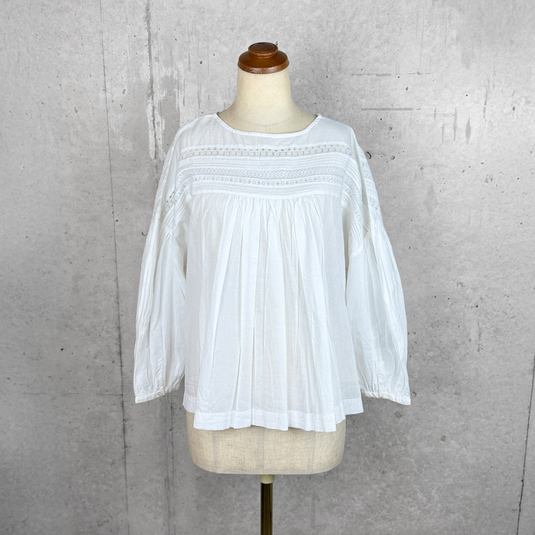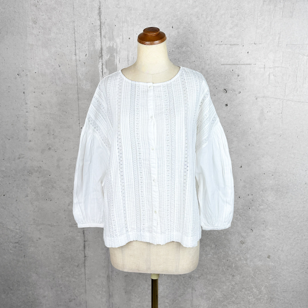 Fanaka ファナカ|リバーレースピンタックボリュームブラウス 2WAY 前後着用 羽織り インド綿100%|251-2096