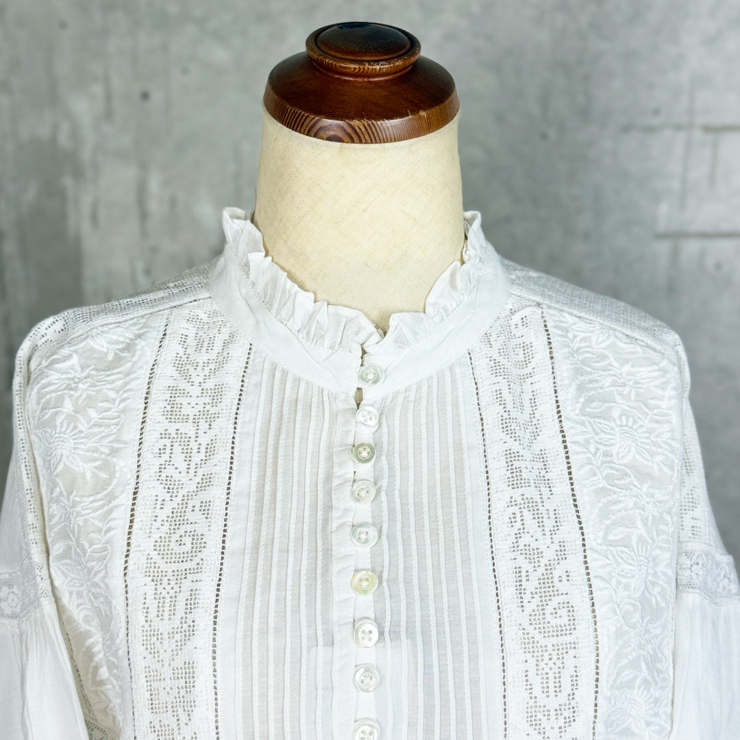 Fanaka ファナカ|ヨーロピアンヴィンテージ ライクレース ブラウス レーヨン混 3種レース 刺繍ブラウス |251-2121
