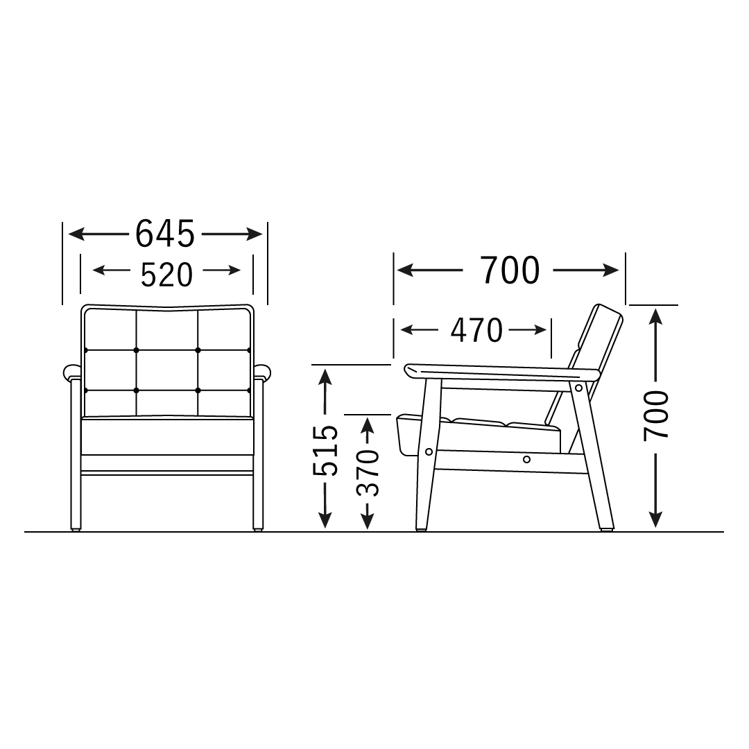 | 幅 | 奥行 | 高さ | 肘高さ |