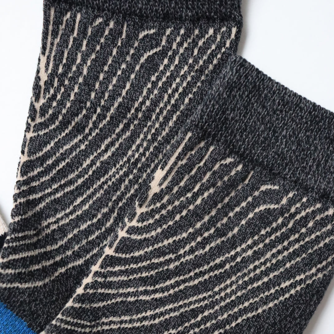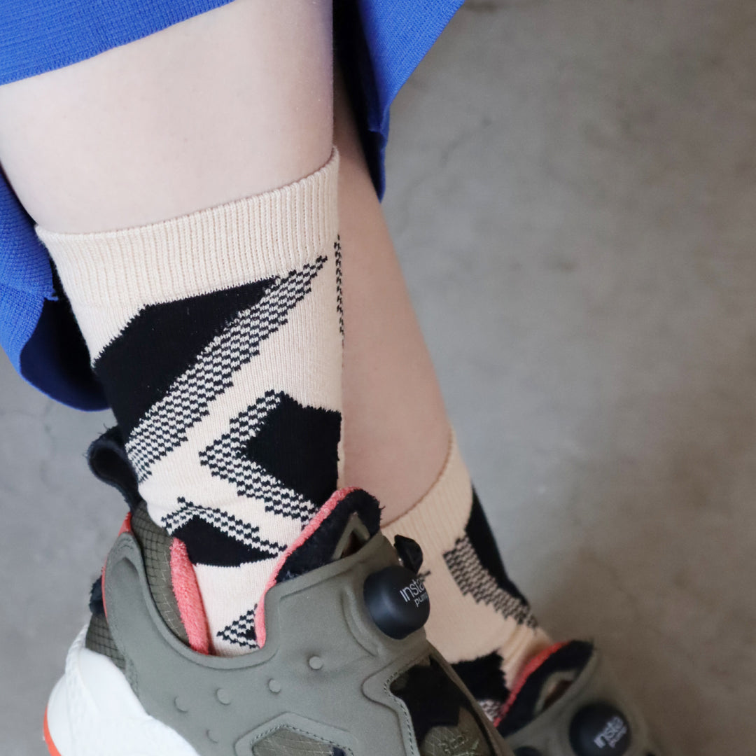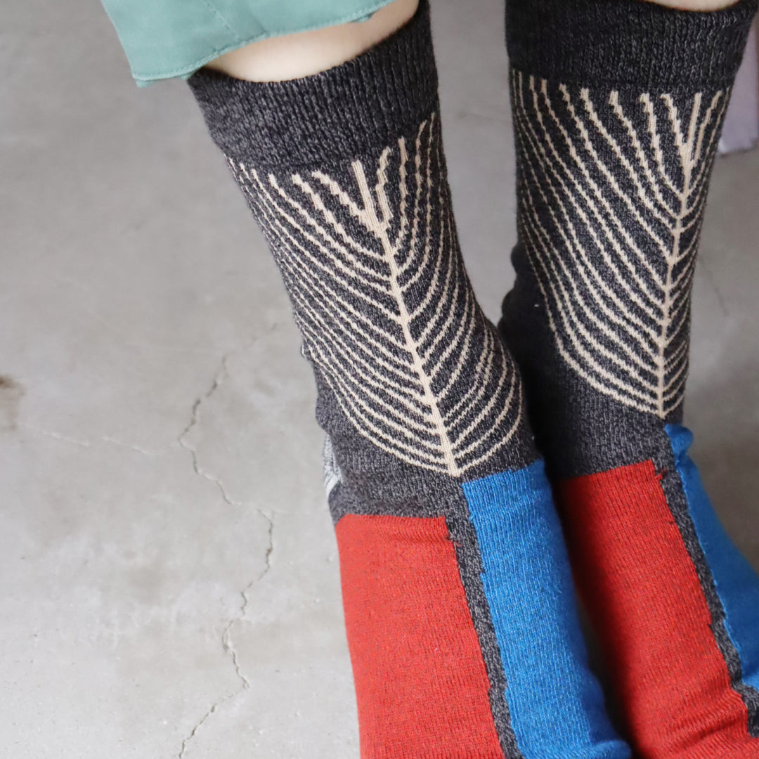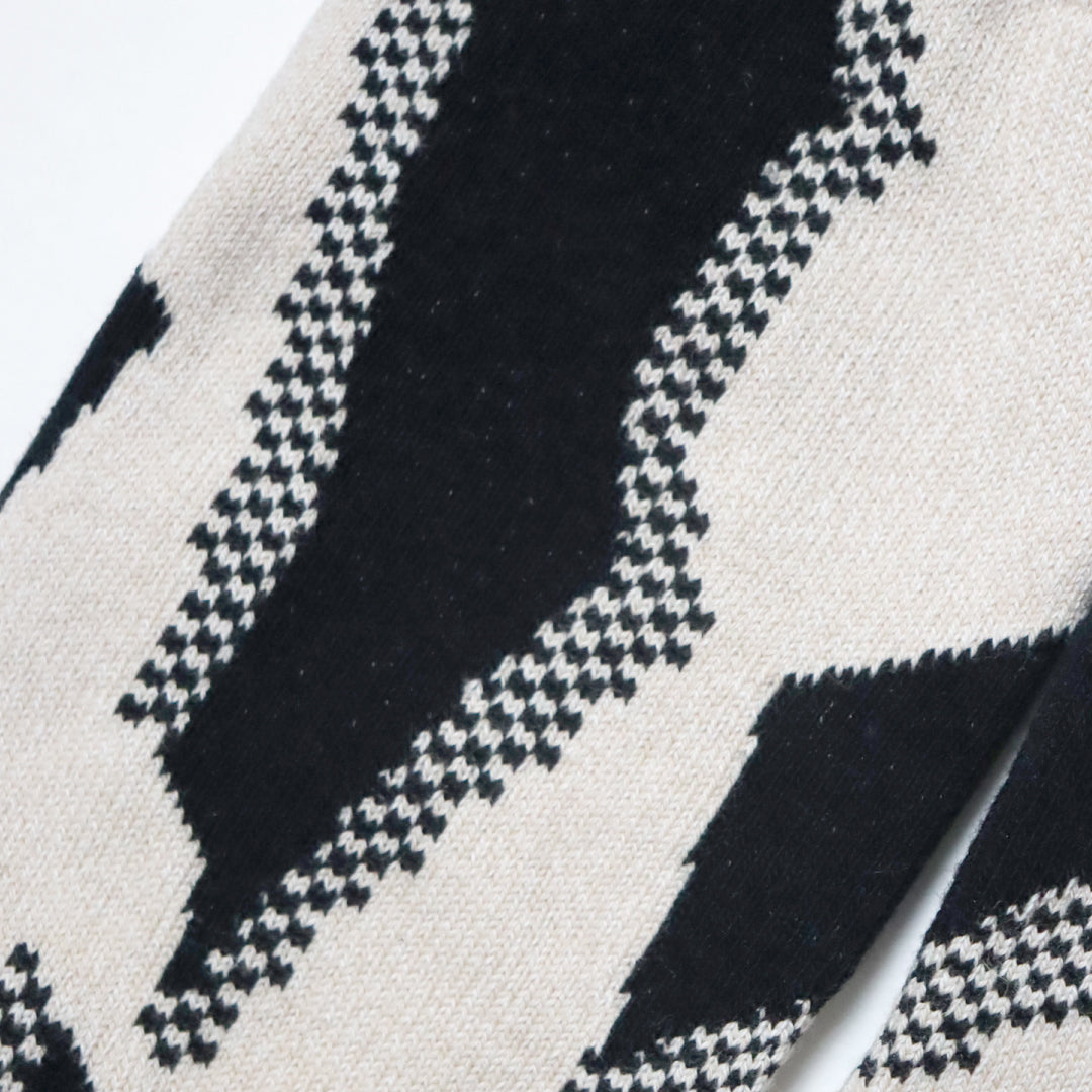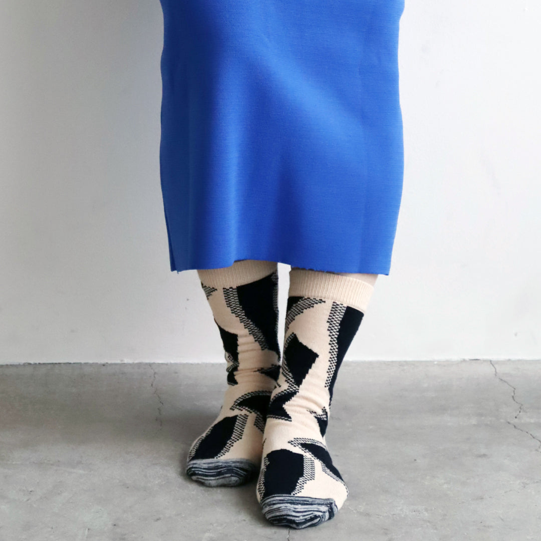 ► ラグのような温かみのミドルゲージソックスが、いつもの日常をさりげなく格上げします。フォークロア風の柄がシンプルな装いに上品な個性を添え、大人のカジュアルスタイルに最適です。