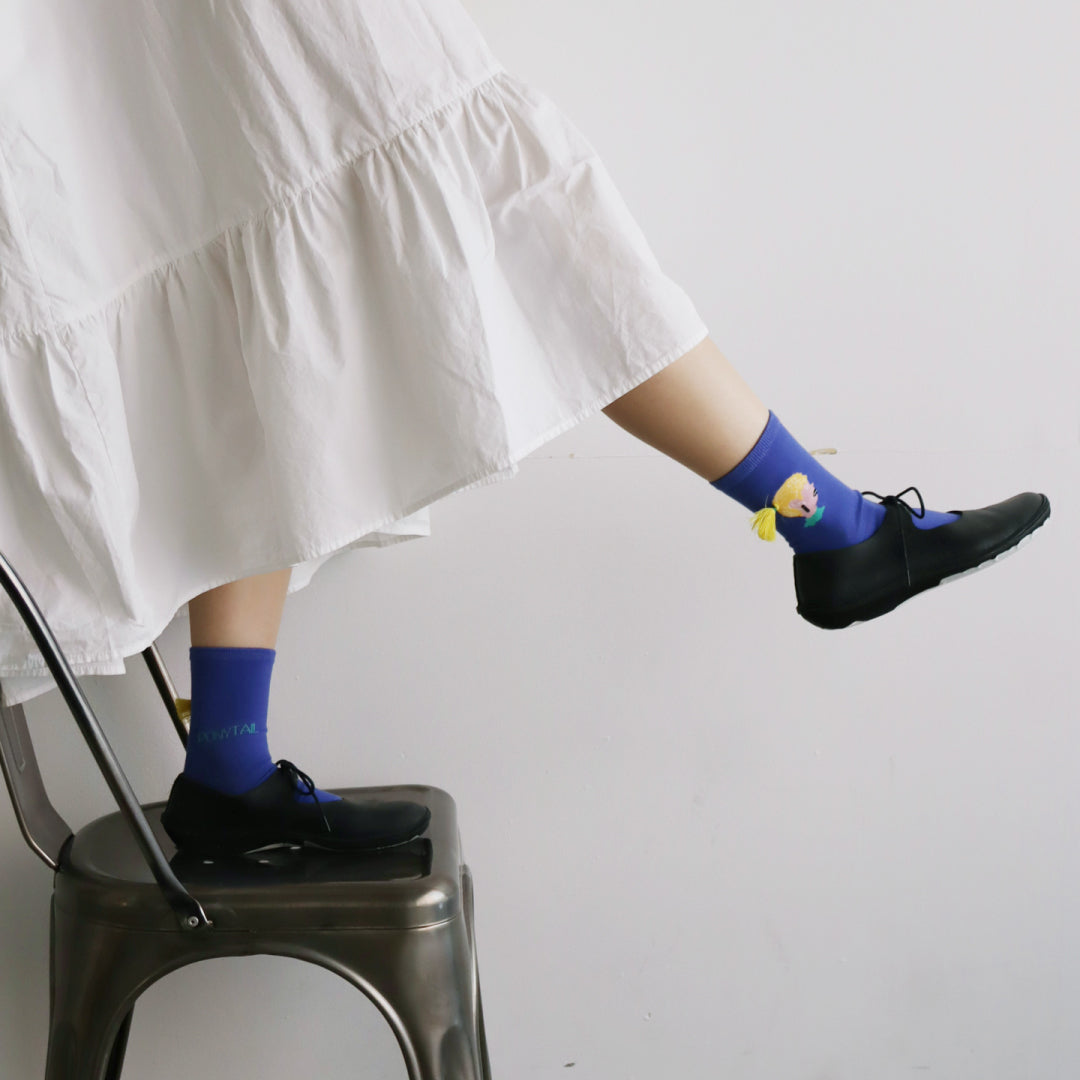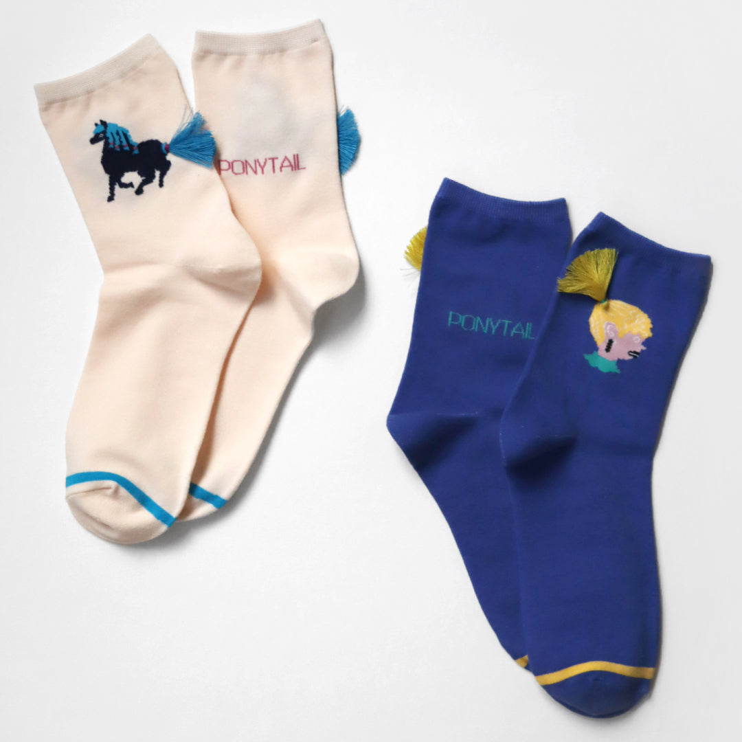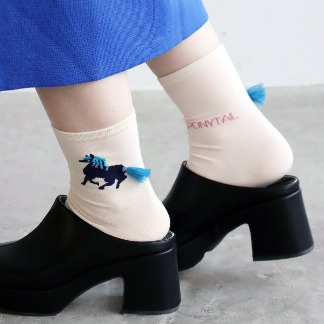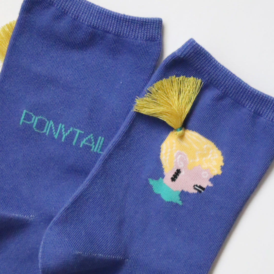 KIVISDOU きびす堂|【2足組】ポニーテールが揺れる 遊び心あふれるユニーク刺繍 ショートソックス|k31024