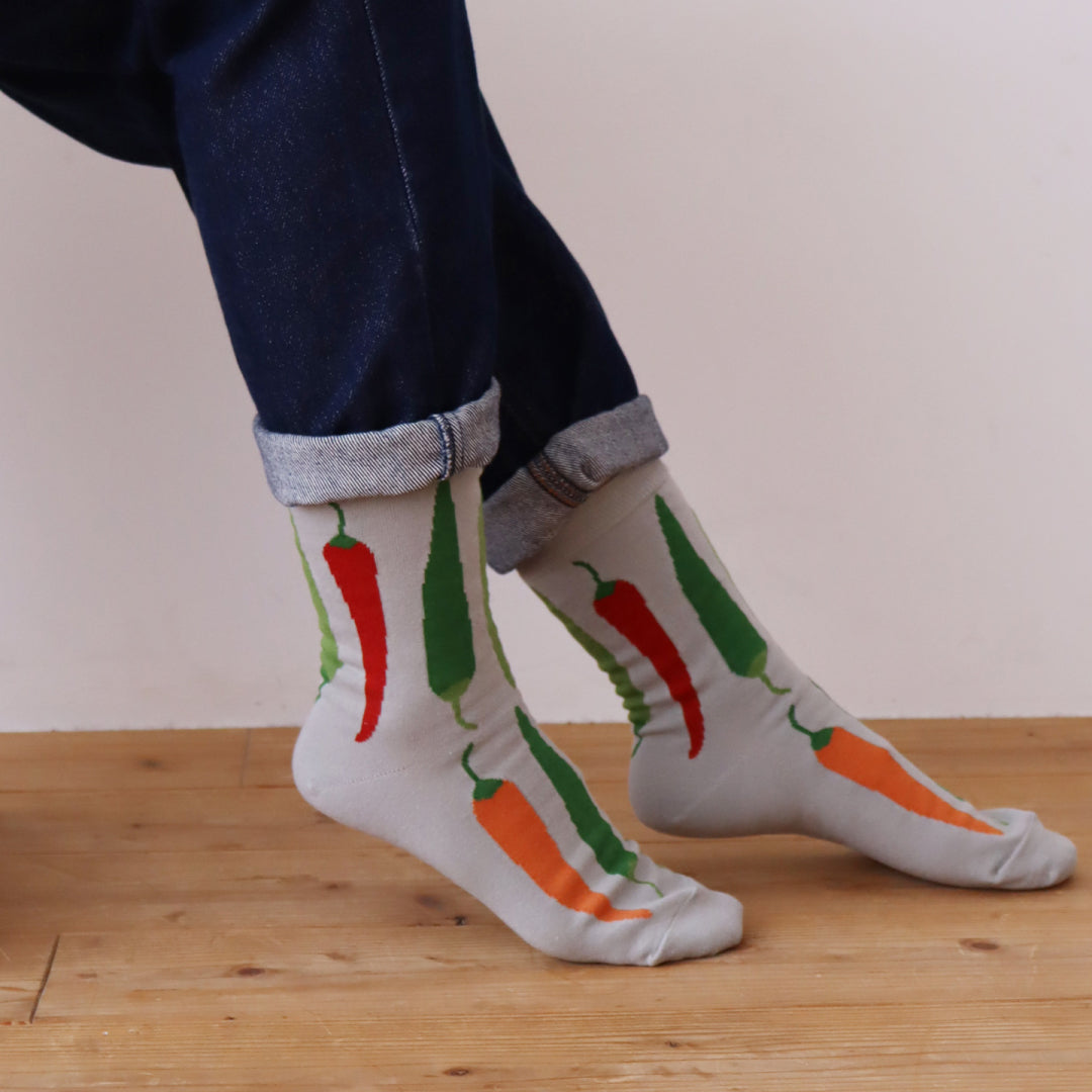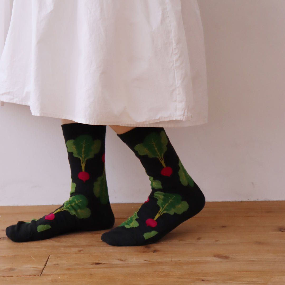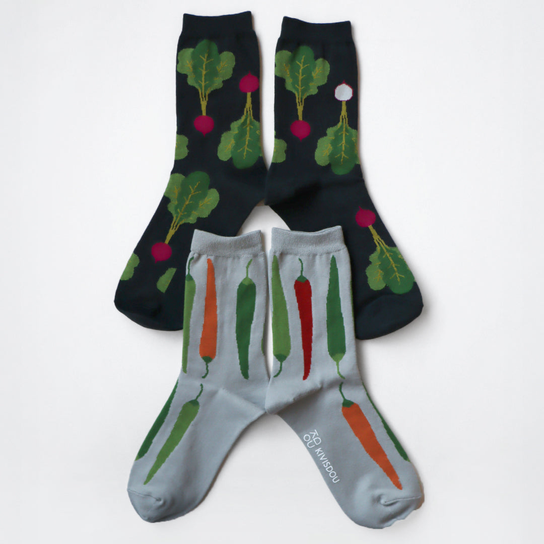 KIVISDOU きびす堂|【2足組】お野菜クルーソックス ラディッシュ トウガラシ ポップ柄 靴下|k41025