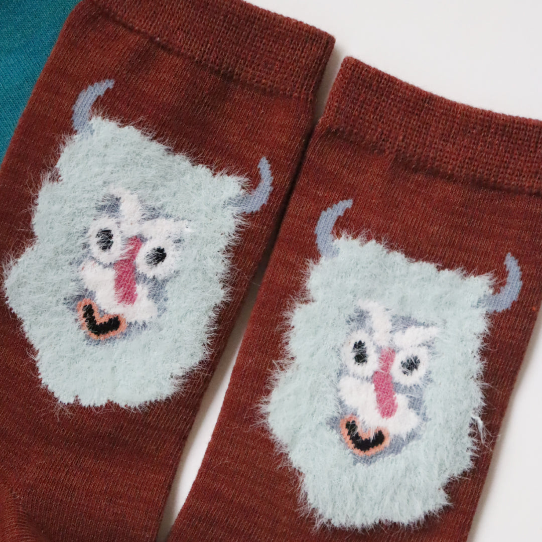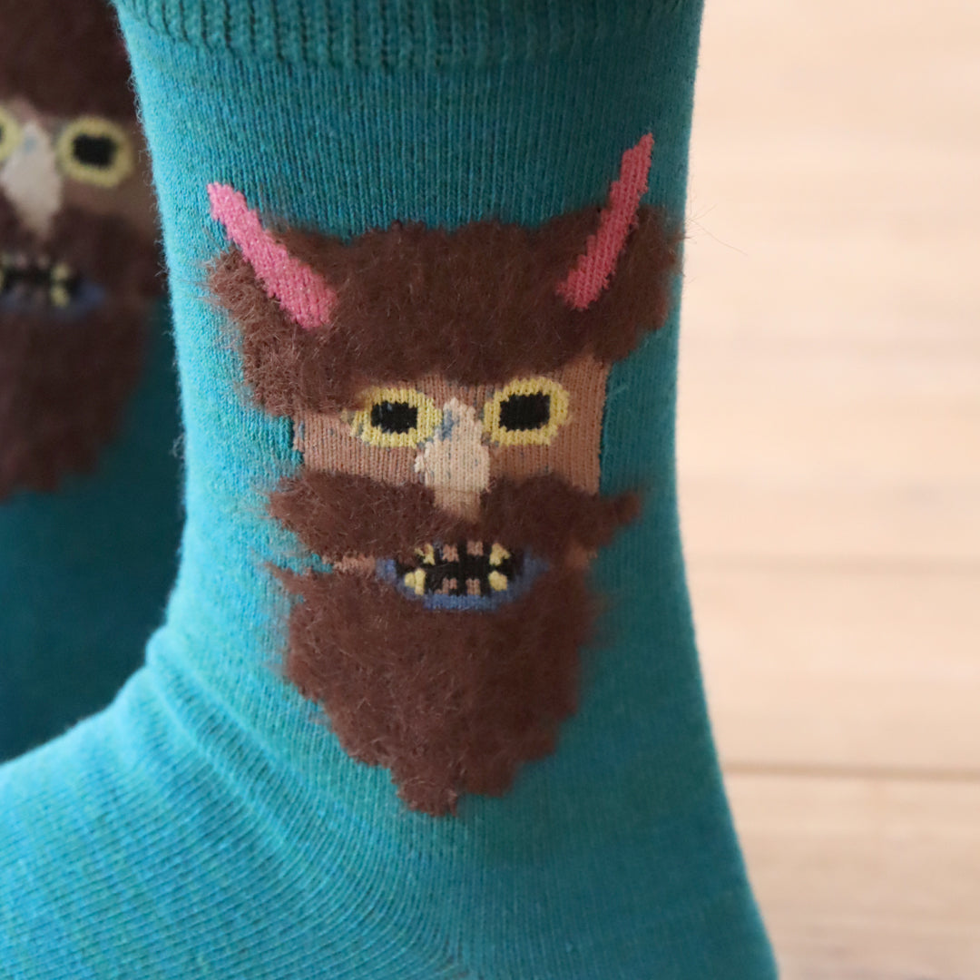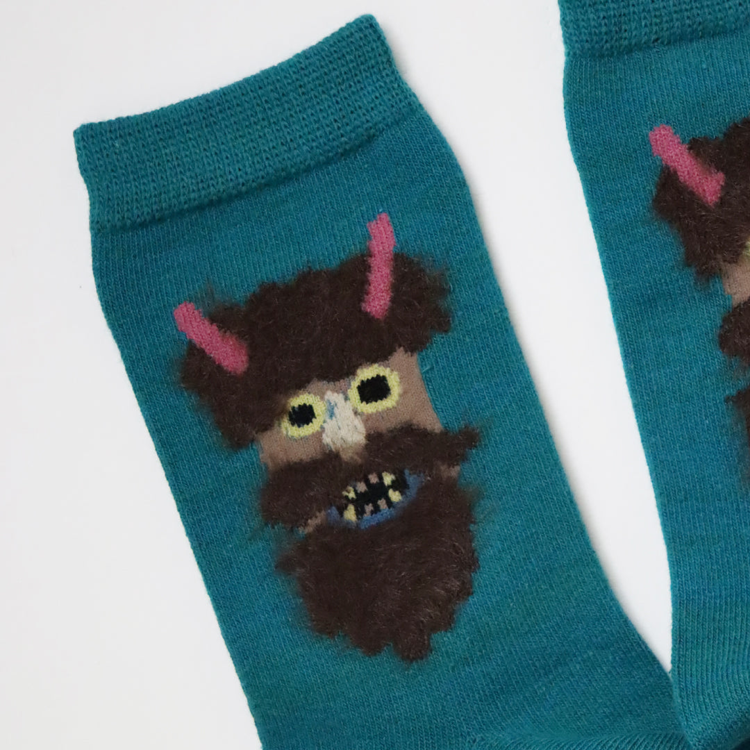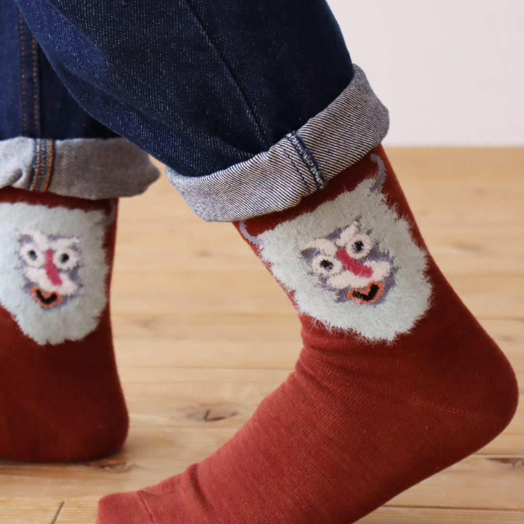 KIVISDOU きびす堂|【2足組】ふさふさの仮面 クルーソックス|フォークロアデザインのユニーク総柄で足元に個性を|k41028