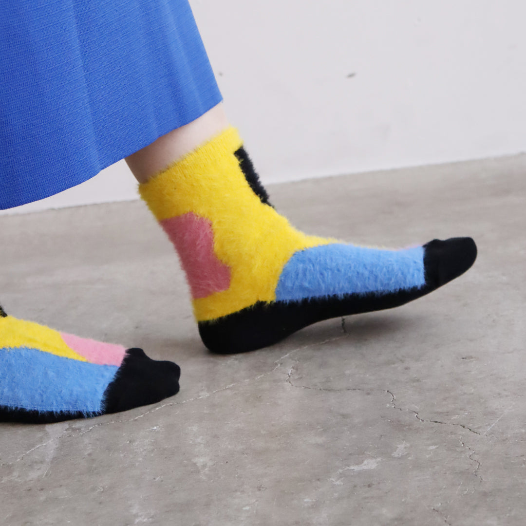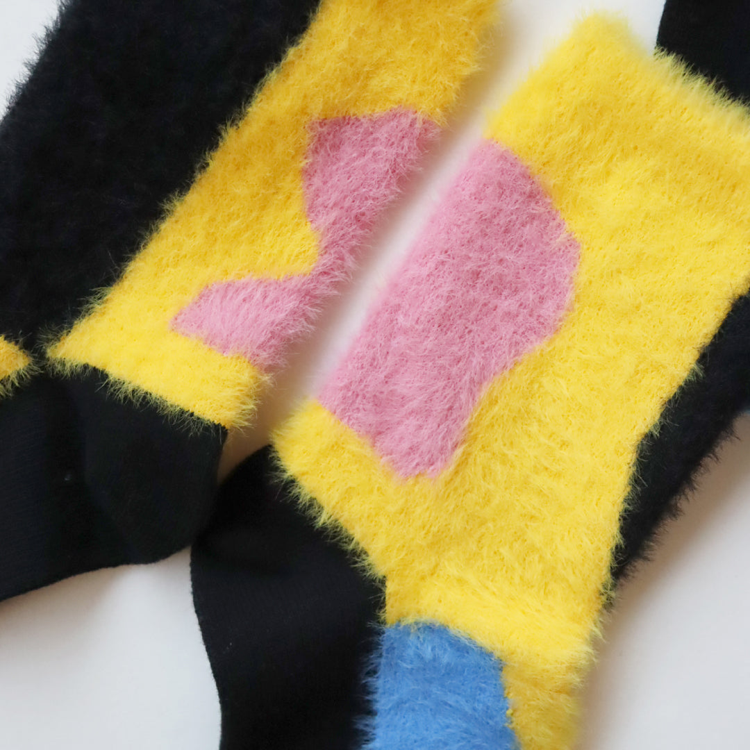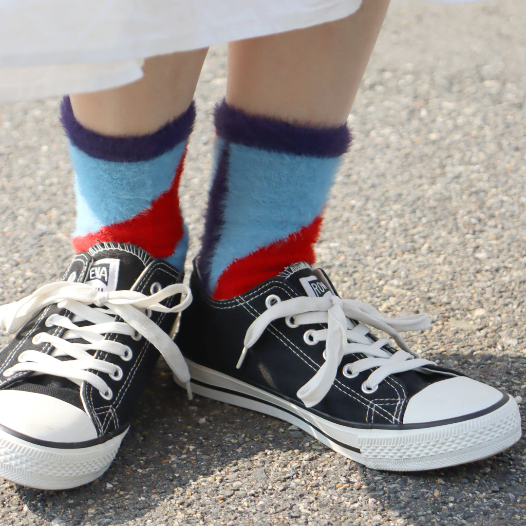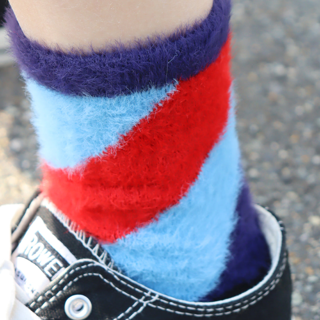 - ► ふわふわモコモコの毛がかわいい、カラフルモンスターをイメージした個性的なクルーソックスです。遊び心たっぷりのデザインで、いつものコーディネートをもっと楽しく、足元からファッションを楽しめます。