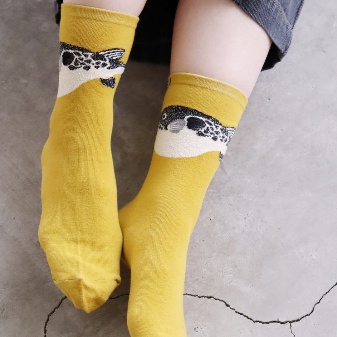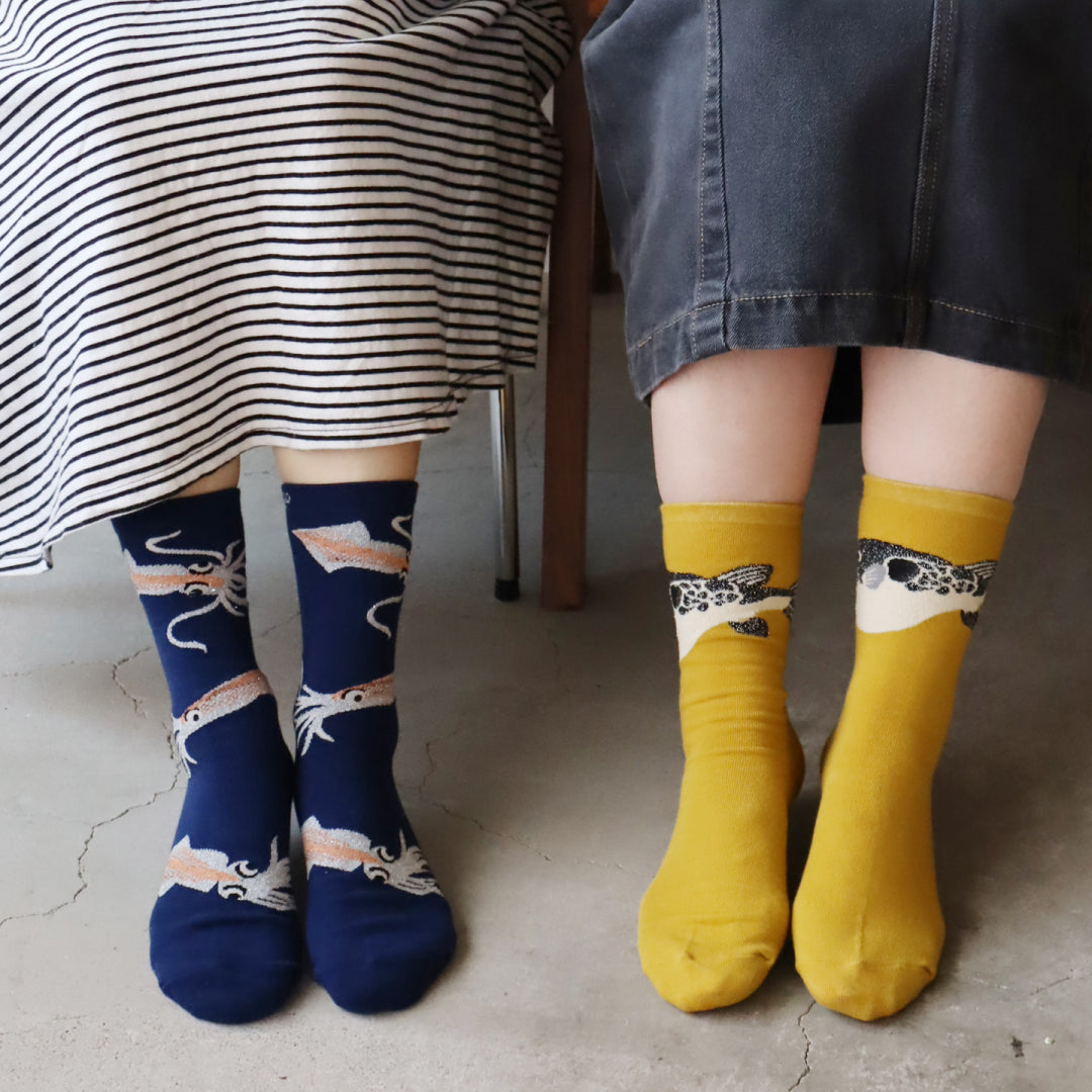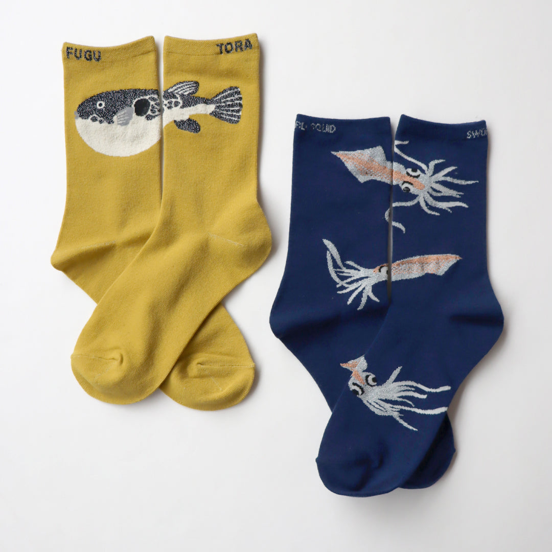 - ■トラフグと剣先イカをモチーフにした、遊び心あふれるソックス