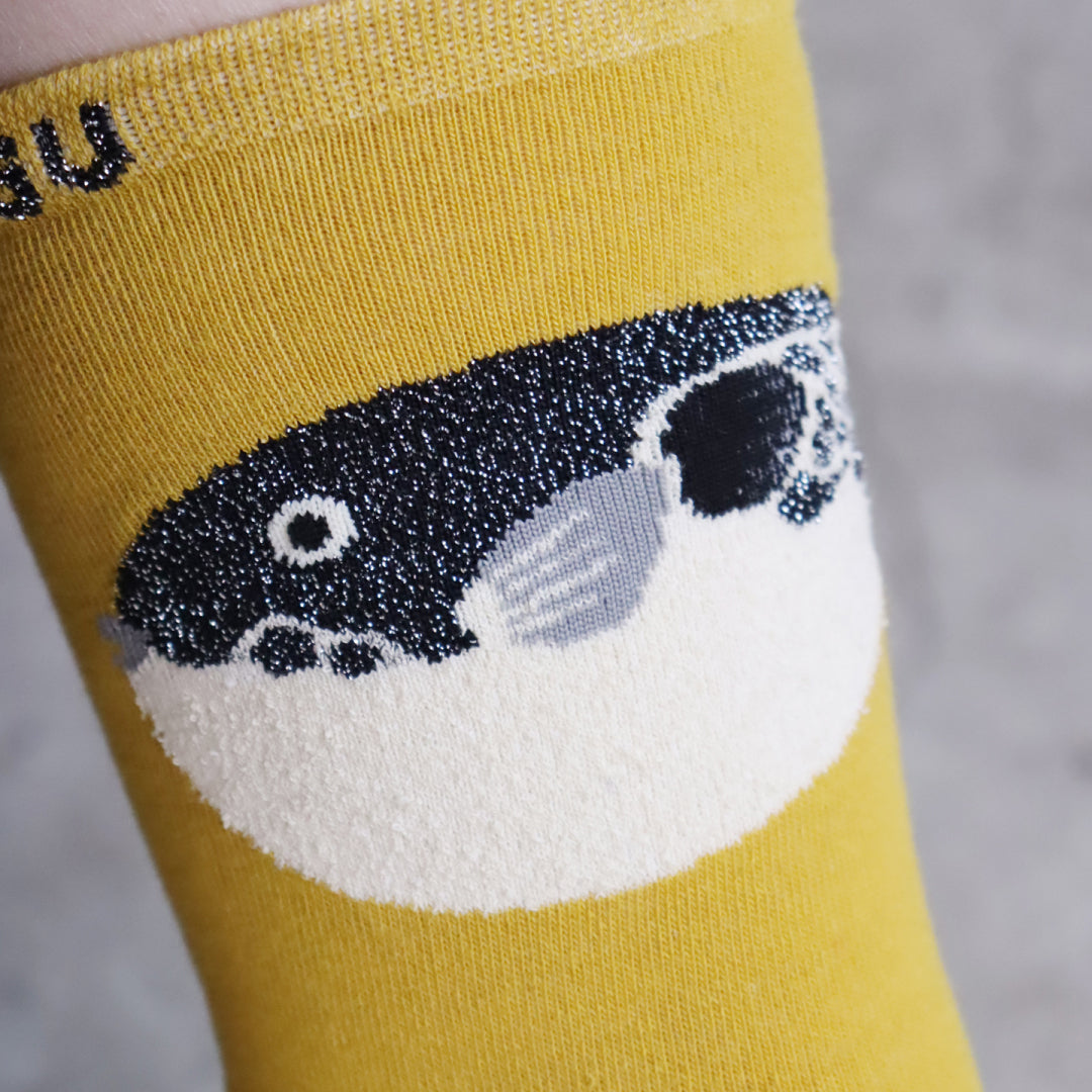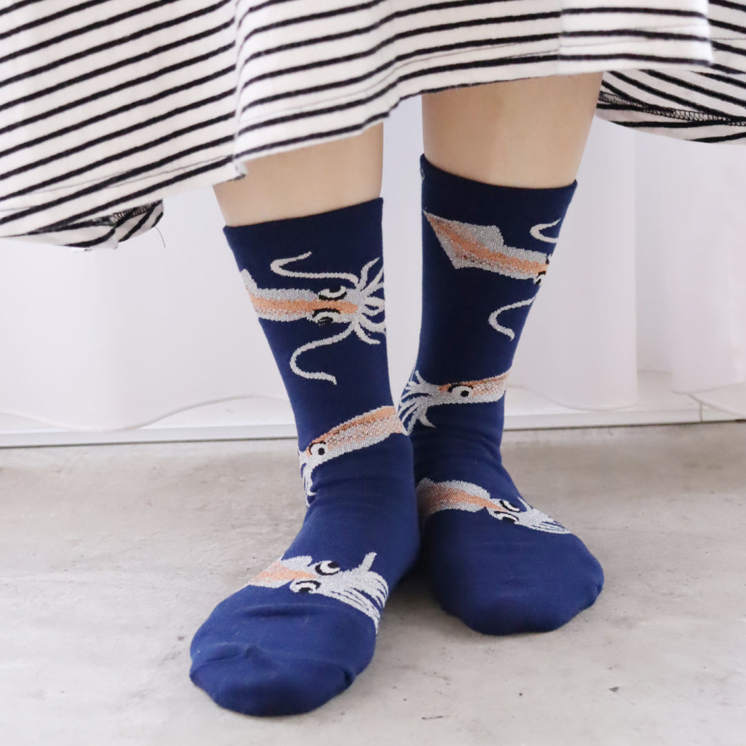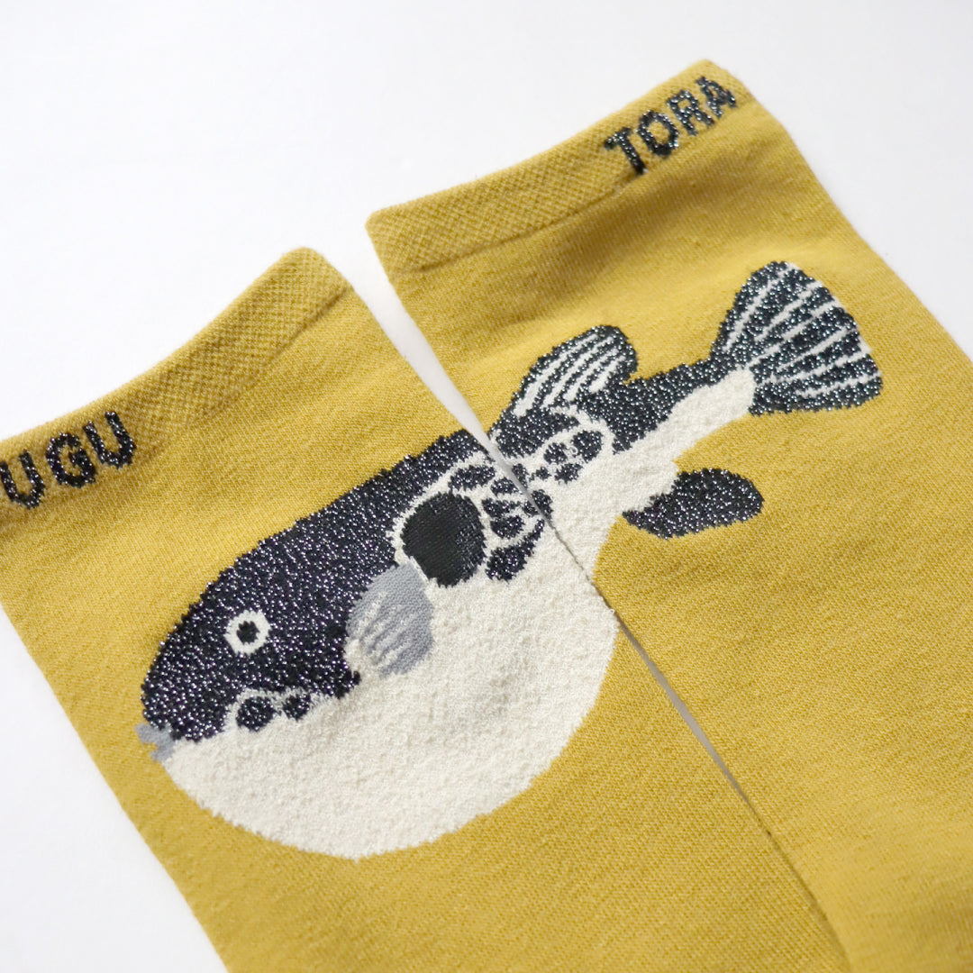 - ■トラフグと剣先イカをモチーフにした、遊び心あふれるソックス