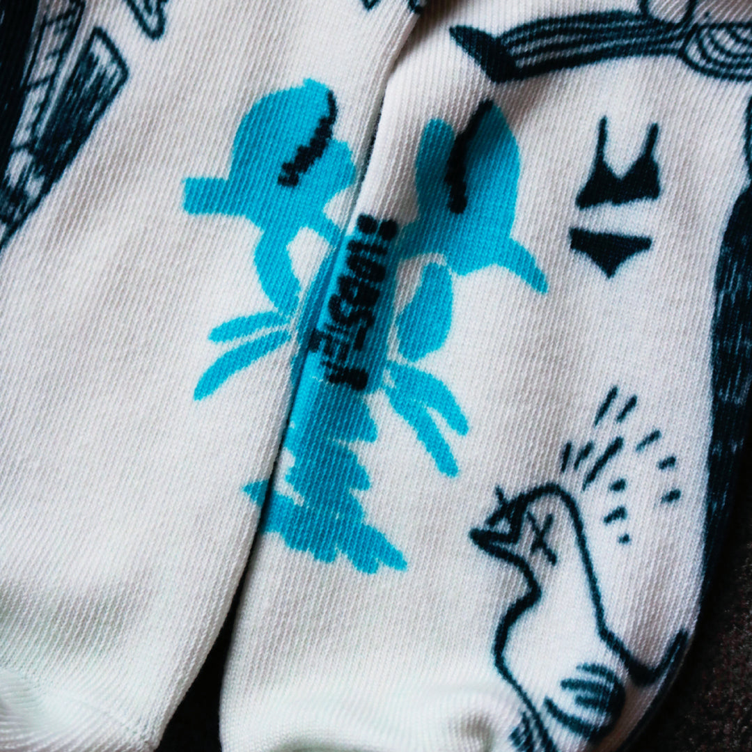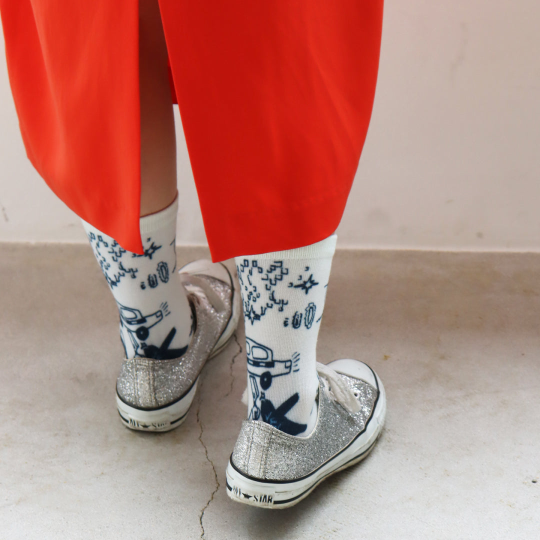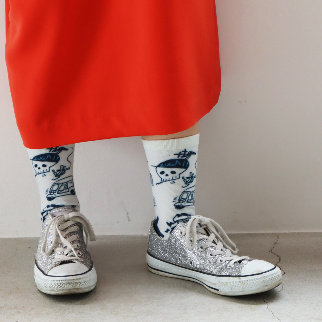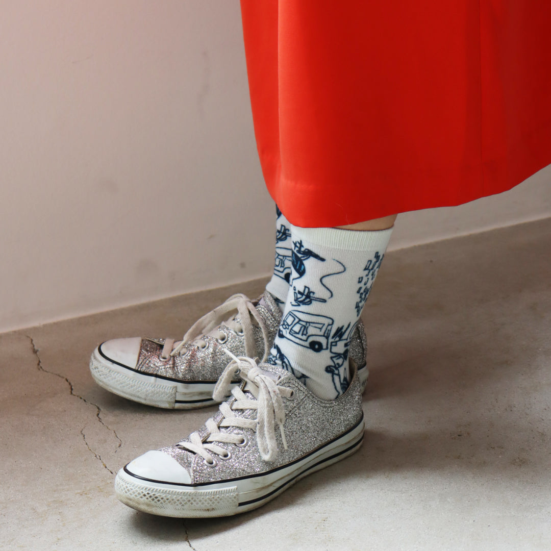 - ► シンプルなスニーカーやサンダルと合わせるだけで、足元にインパクトをプラス。いつものコーディネートに個性を出したい方におすすめです。個性的な靴下をお探しの方にぴったりの商品です。