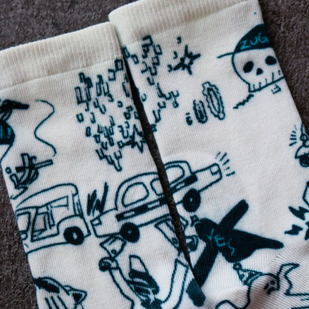 KIVISDOU きびす堂|遊び心満載!イタズラ描きプリントソックス2足組 Sサイズ|k40895