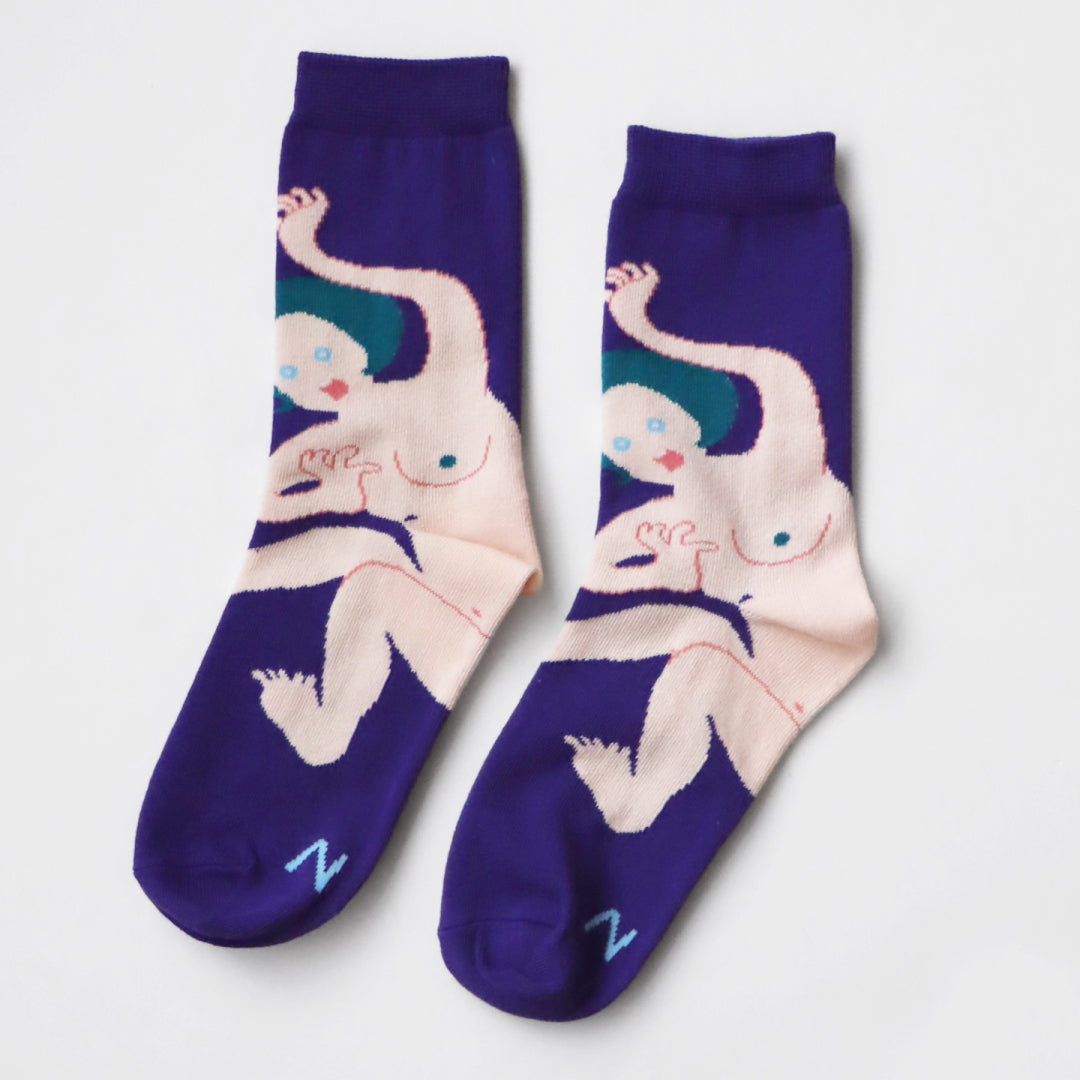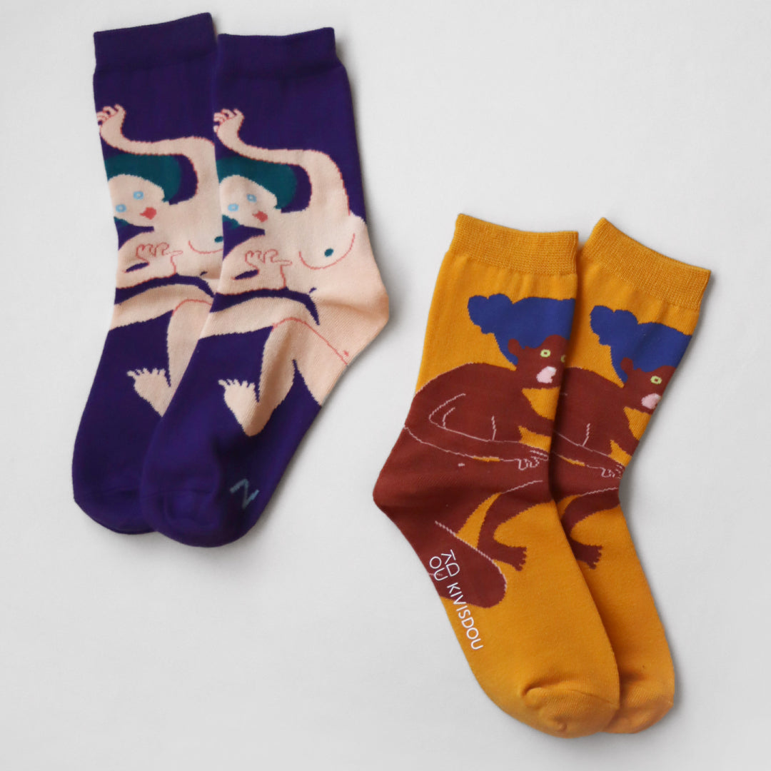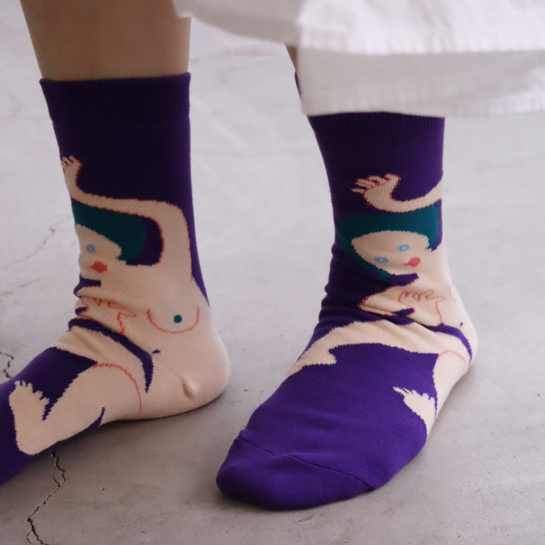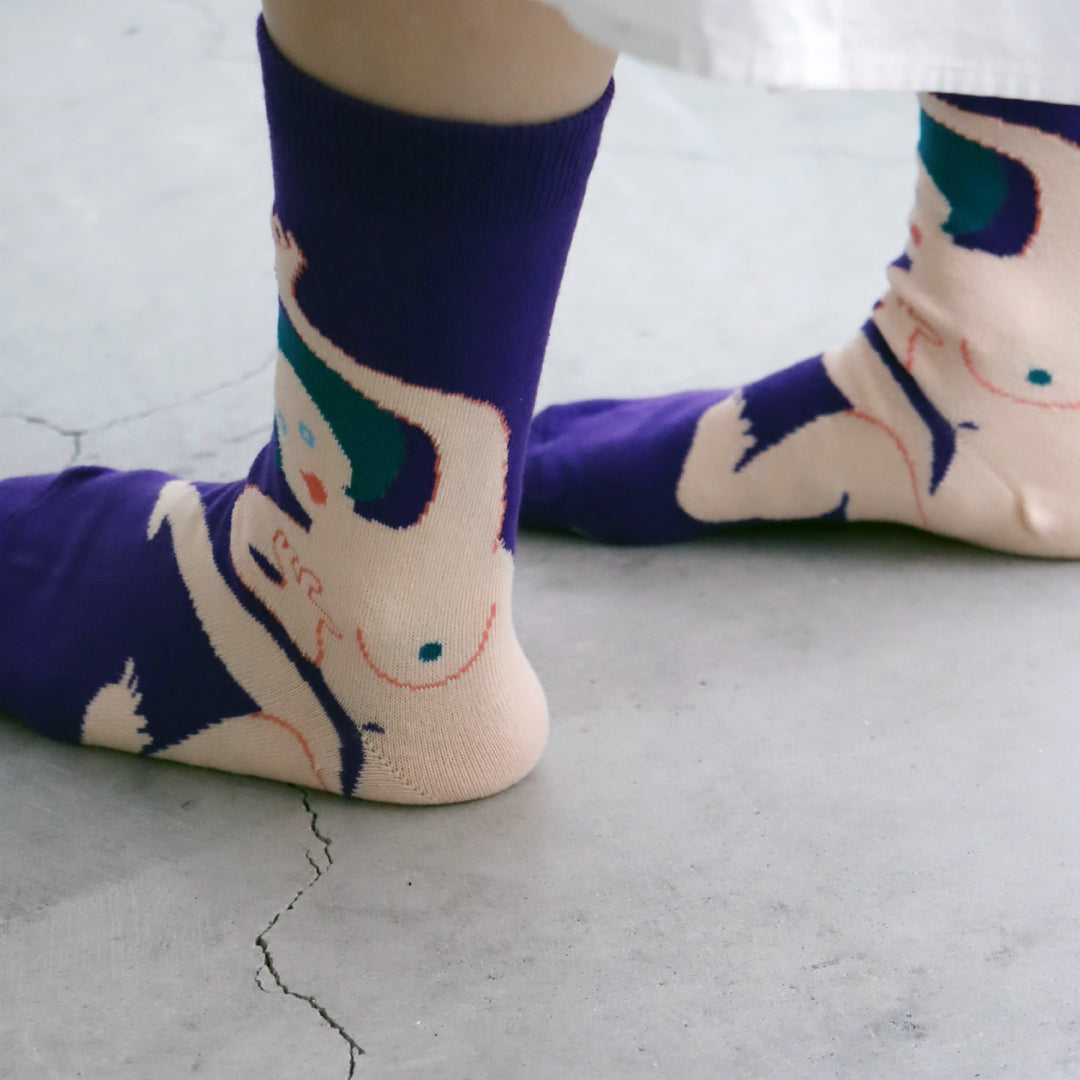 - ► クリエイティブ、フォークロア、シュール、ナチュラル、ポップ、フェミニン等、多種多様な要素を取り入れ、1ブランドでありながら複数ブランドであるかのような不思議な世界観もった靴下と服飾雑貨のブランドです。