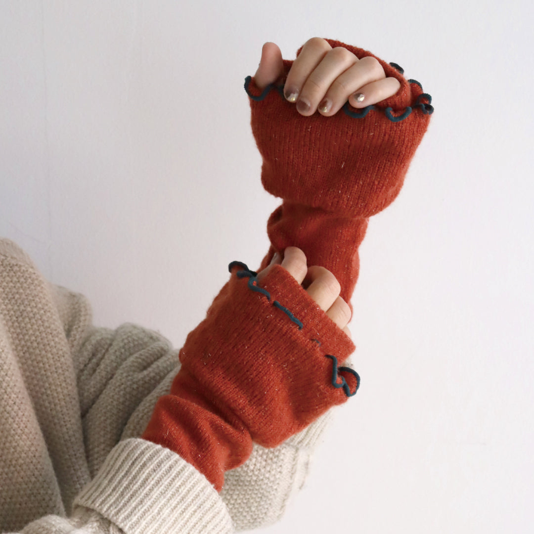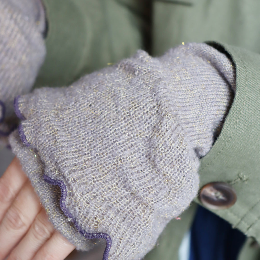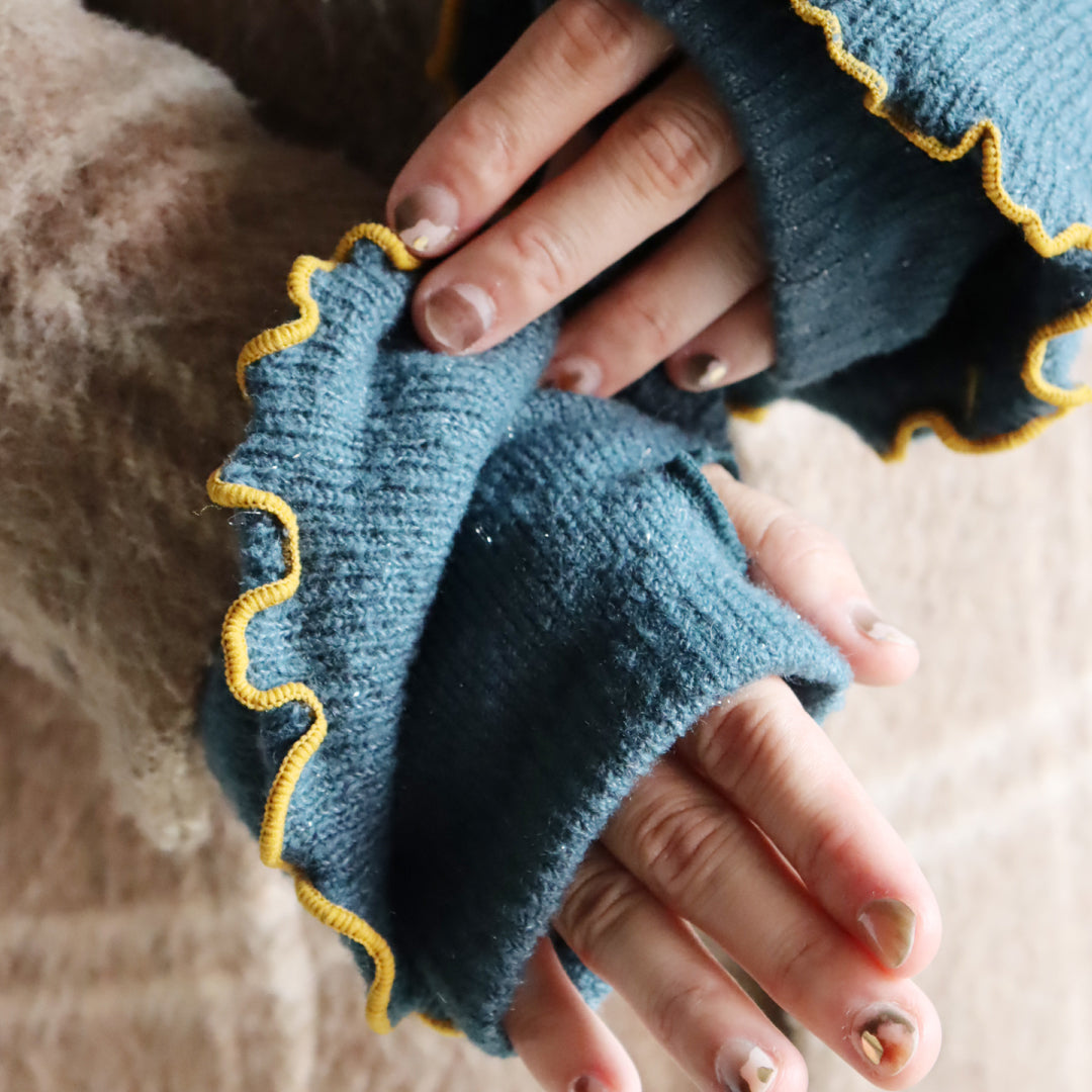 KIVISDOU きびす堂|チューリップフリル ハンドウォーマー |ラメ入り 指なし手袋 スマホ操作も楽々!チクチクしないあったか防寒グッズ|k61092