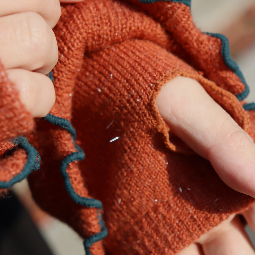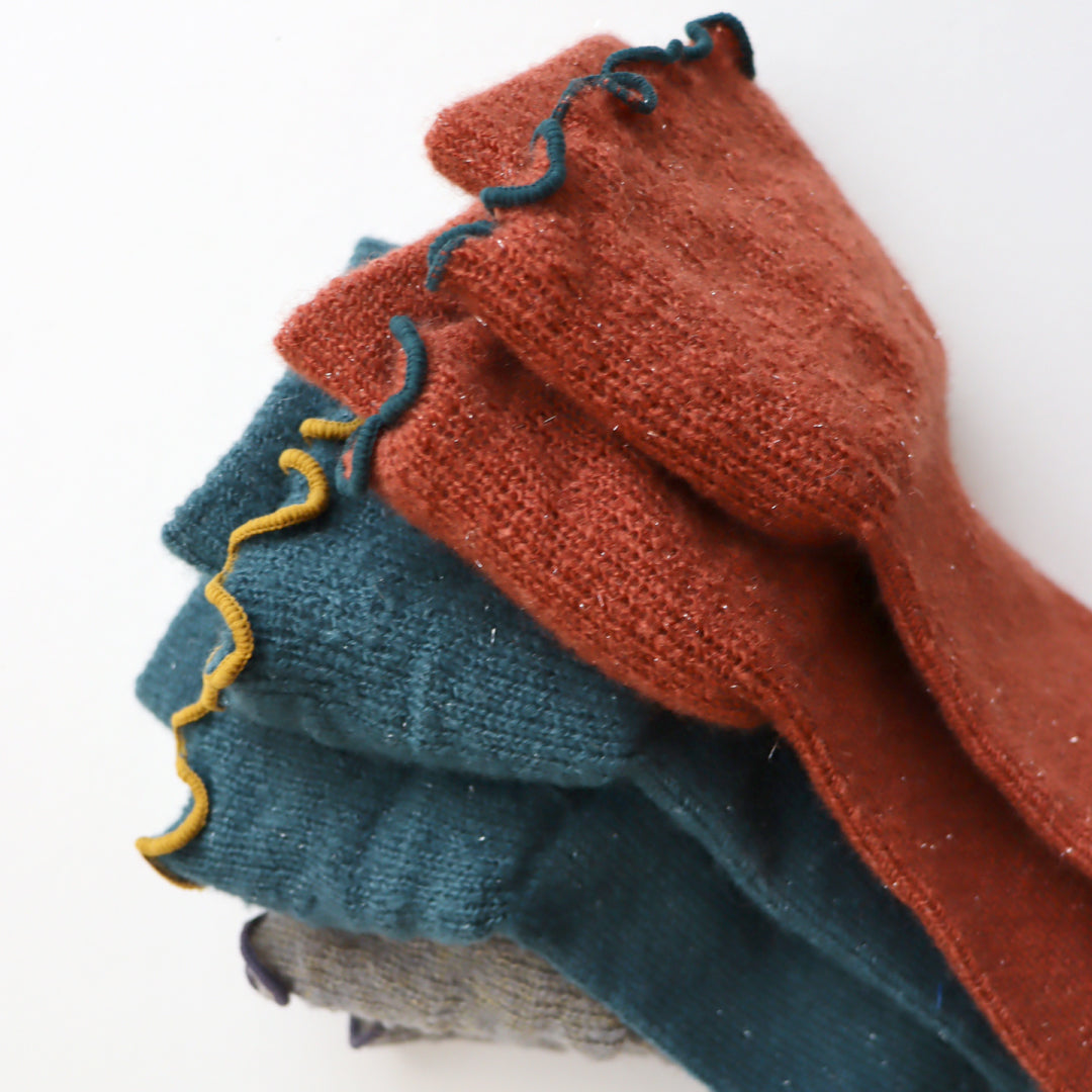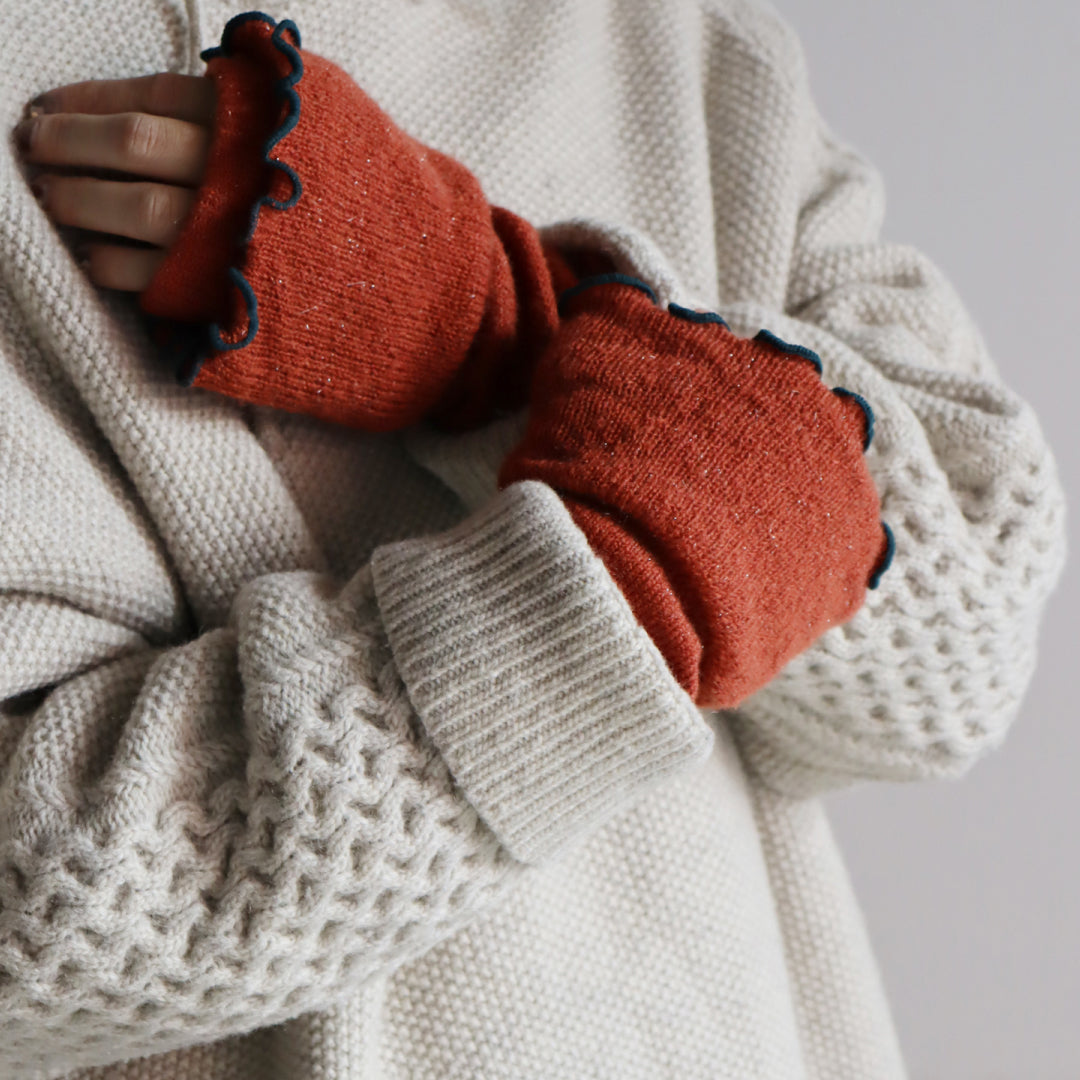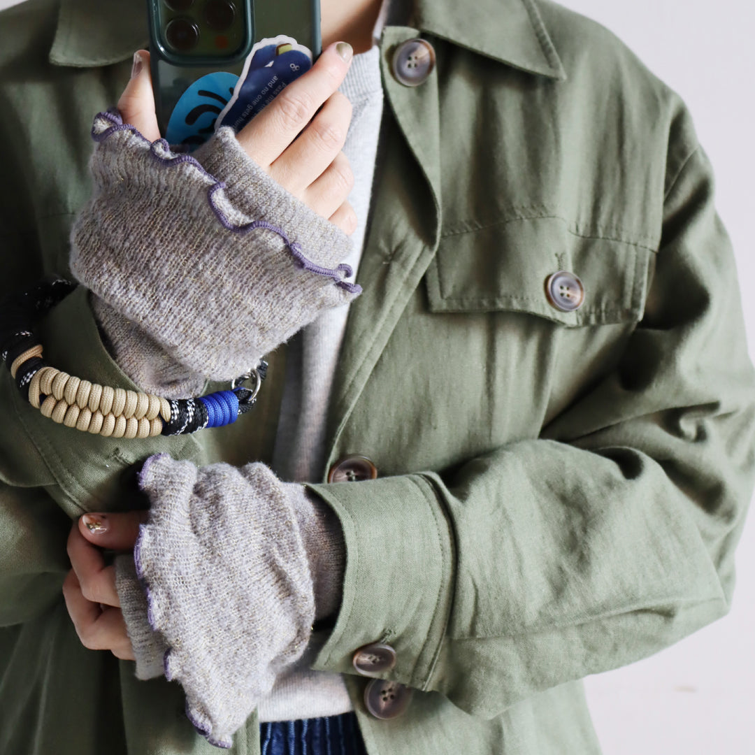 KIVISDOU きびす堂|チューリップフリル ハンドウォーマー |ラメ入り 指なし手袋 スマホ操作も楽々!チクチクしないあったか防寒グッズ|k61092