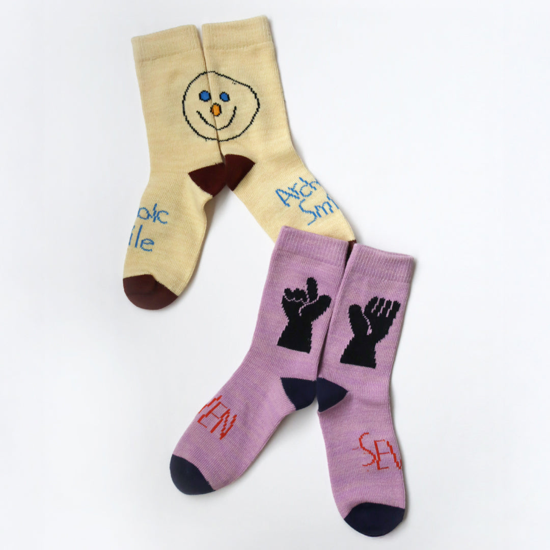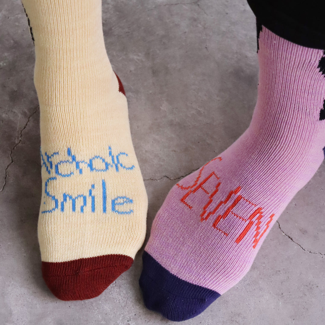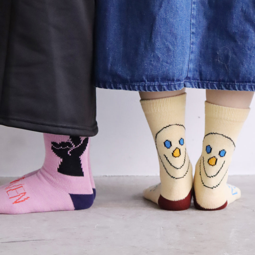 - ► KIVISDOUの「No deep meaning.」ソックスは、ゆるくてへんてこな柄が魅力。 遊び心あるデザインが日常に愛着とハッピーをプラスするレディースギフトに最適です。