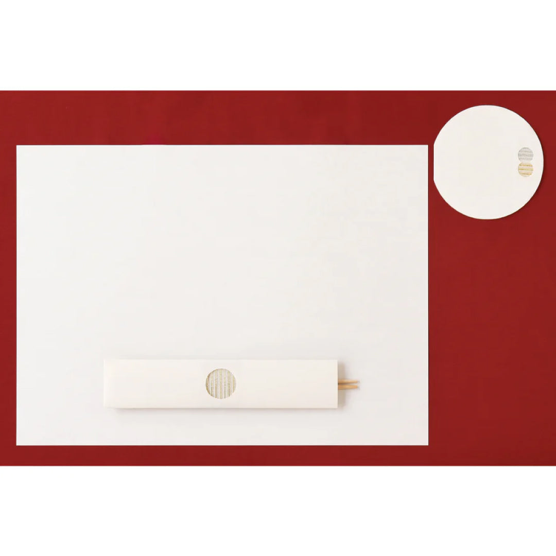 - ► ざらりとした質感の紙は和洋どちらにも馴染み、お祝いの席に最適。歳神様と共食する縁起の良い祝箸でハレの日を。マットはシンプルな無地で、アレンジ自在に楽しめます。