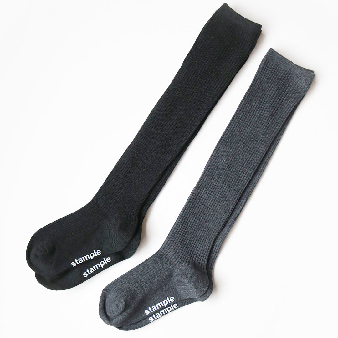 stample スタンプル|【キッズ】ニーハイソックス2足組 靴下 撚り杢細リブ 16cm〜24cm おしゃれ 子供 女の子|72285