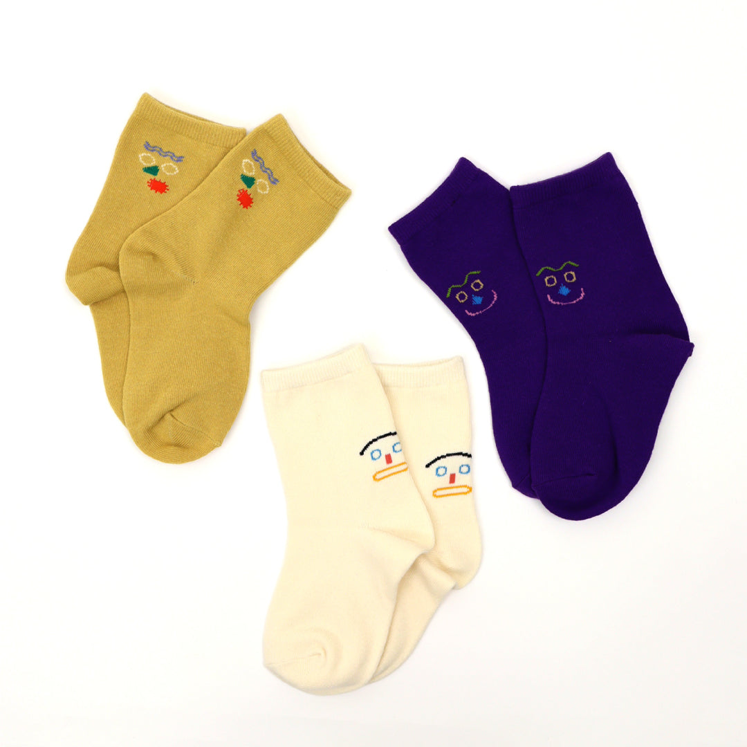 stample スタンプル|キッズ 3足組 ファニーフェイス クルーソックス ユニセックス 幼稚園 小学生 ギフト プレゼント|73276