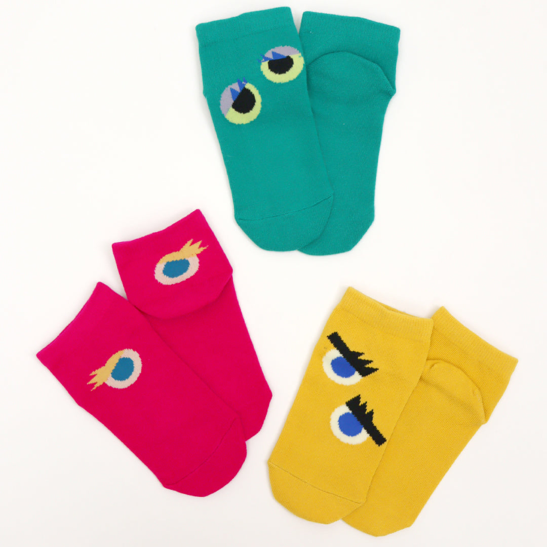 stample スタンプル|キッズ 3足組 じーっ アンクルソックス 靴下 レディース くるぶし丈 派手色 おもしろ 個性的|73301