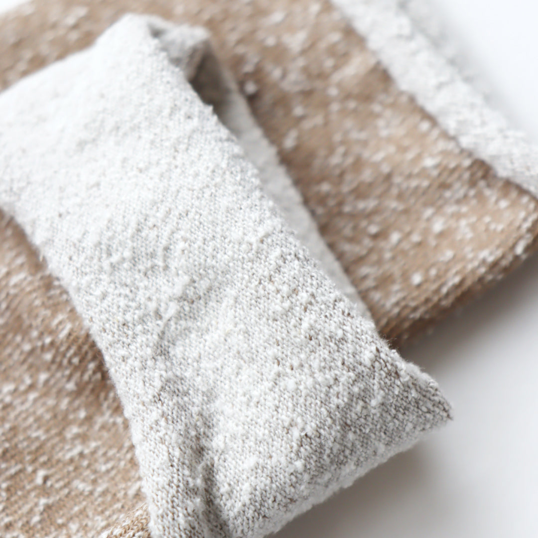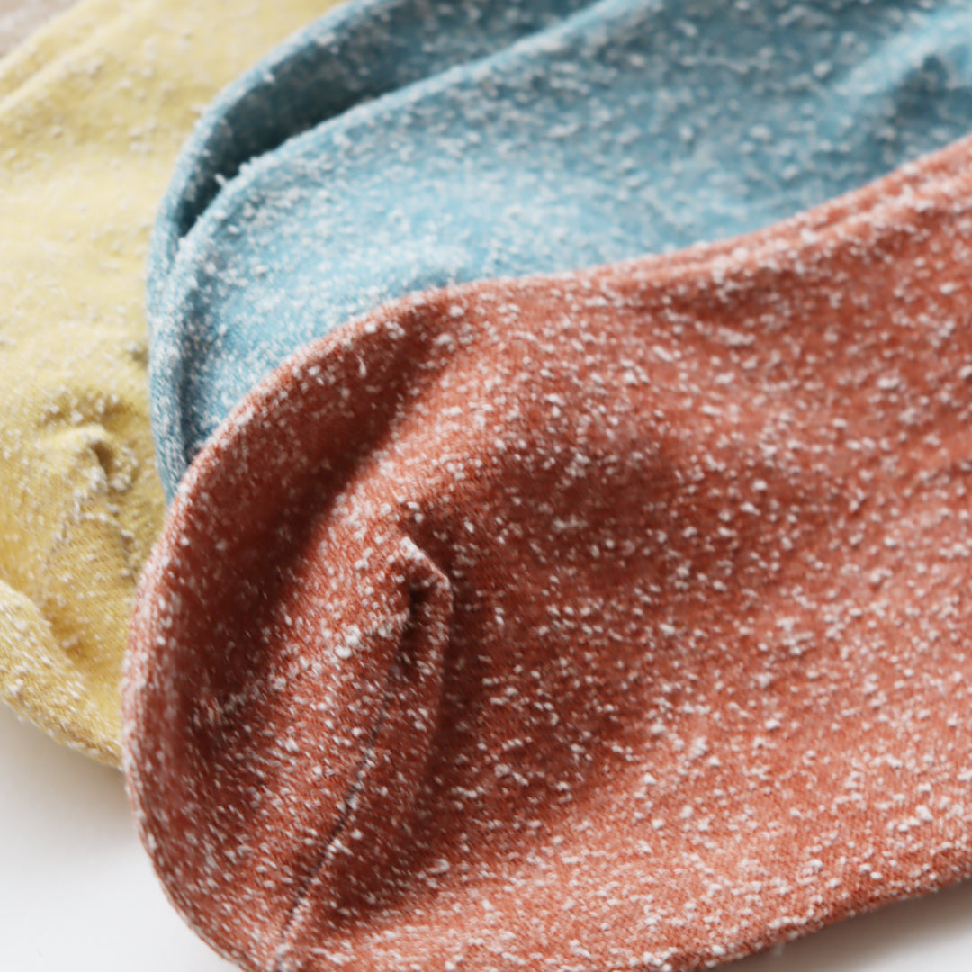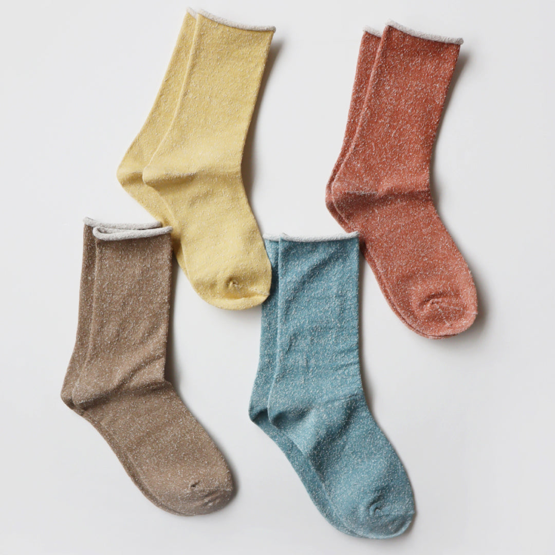 - ► 従来のソックスにあるゴムをなくし、締め付け感のないやさしい履き心地を実現しました。長時間履いていても跡がつきにくく、ストレスフリー。凹凸感のある素朴な風合いとナチュラルな色合いは、どんなスタイルにも合わせやすく、毎日のコーディネートに自然と馴染みます。