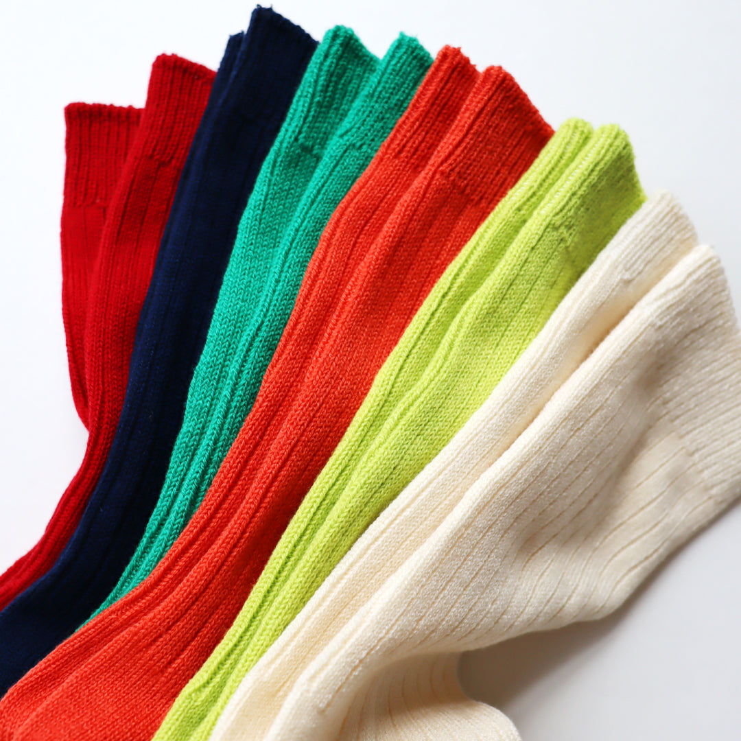- ► 気分を変える高発色カラーソックスは、秋冬コーデの主役になるアクセントアイテムです。ローゲージリブの程よい厚みが、リラックス感と足元のボリューム感を演出します。