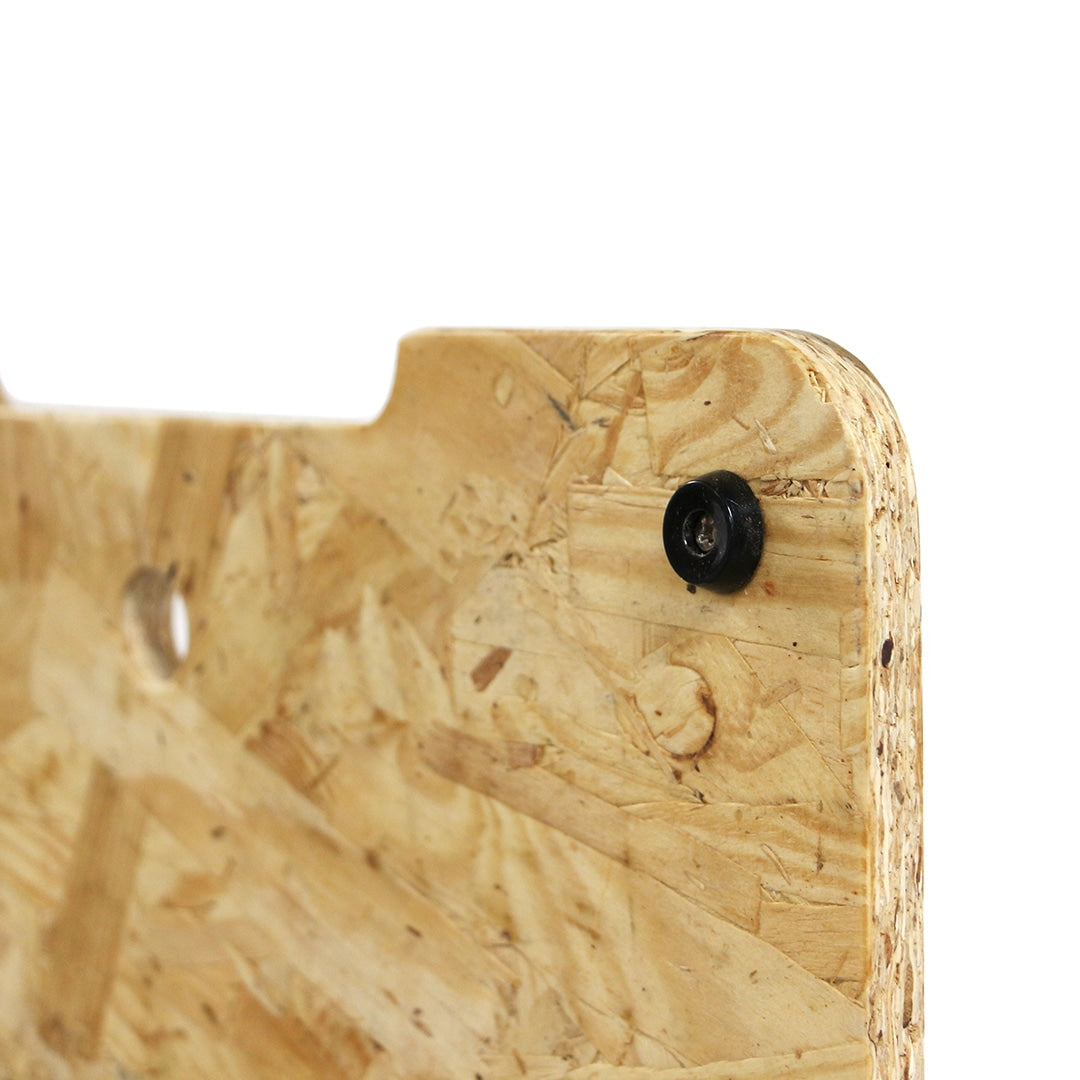 - ► 木片をプレスすることで無駄を出さずに製造でき環境に優しいOSB合板(ナチュラル)を使用。撥水加工を施しているため、簡単に手入れも可能です。お手入れ後は丸穴部分で引っ掛けて乾かせるのも便利。